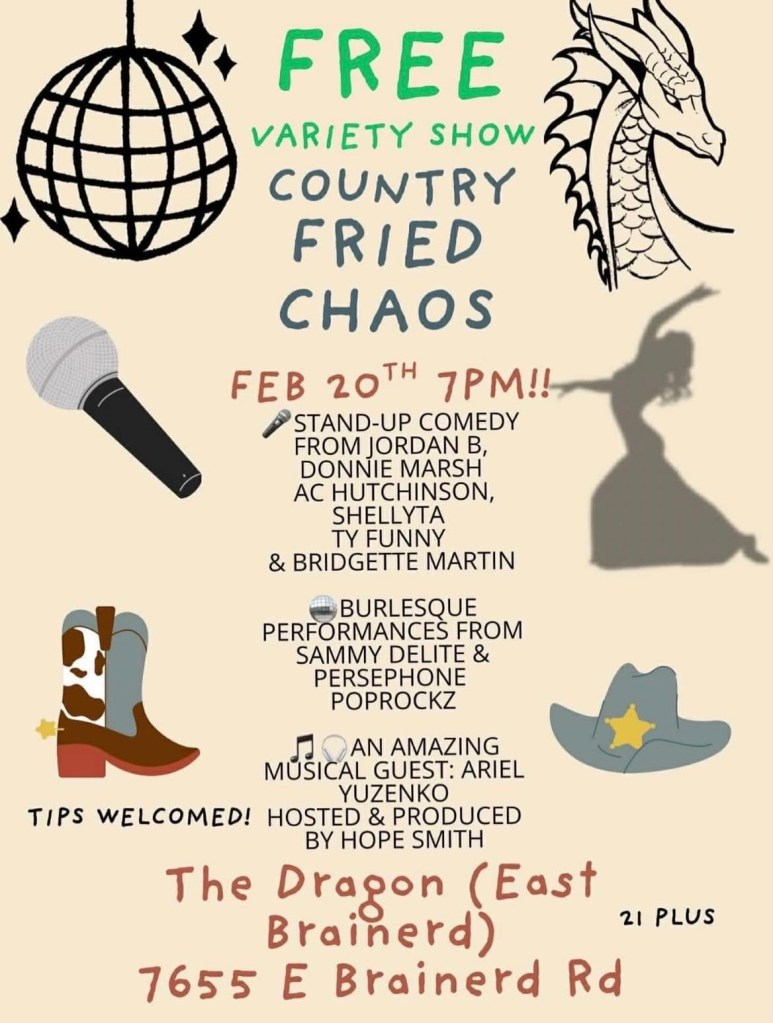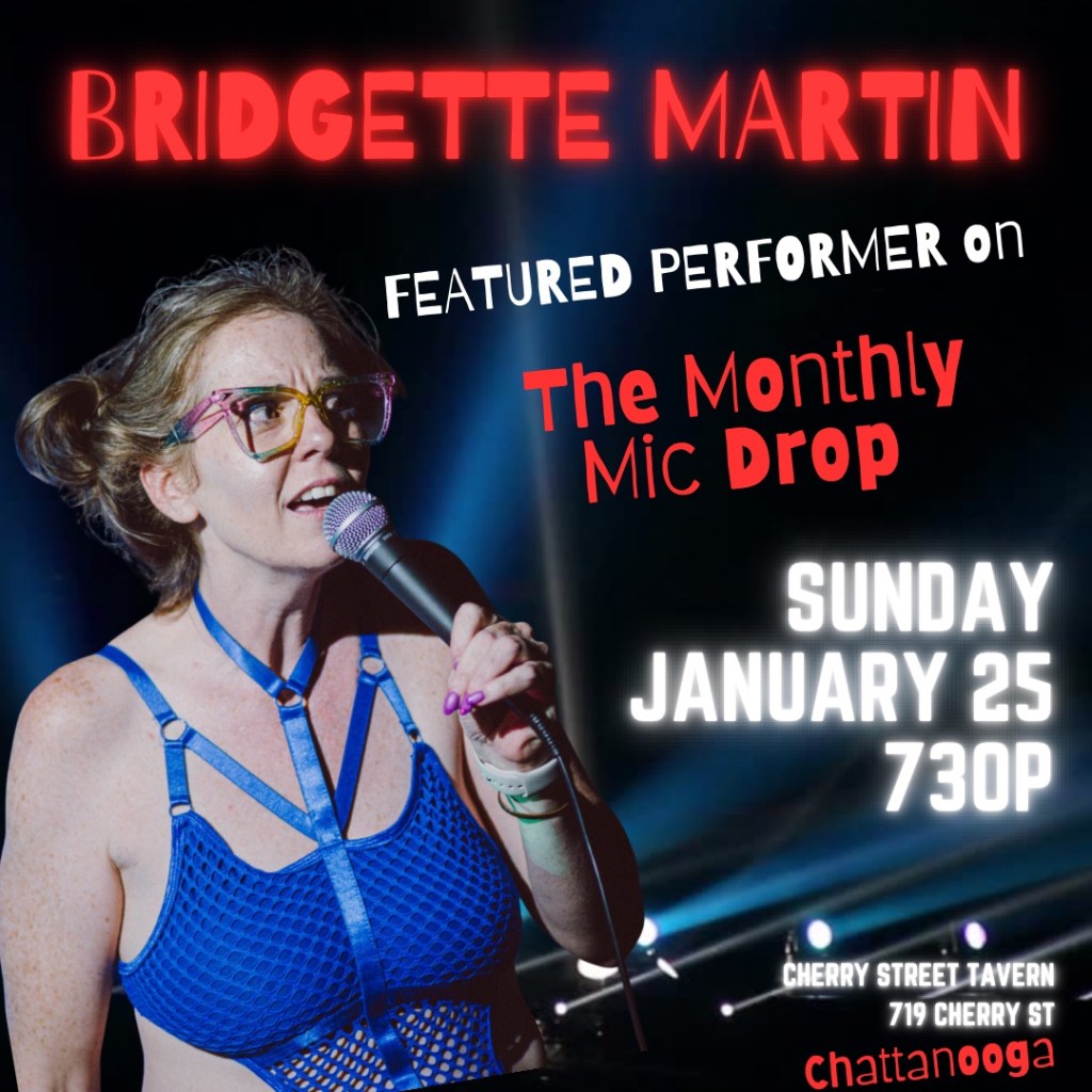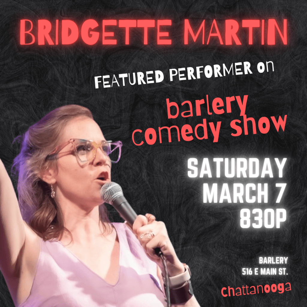 Touring extensively in the Southeast, Bridgette has performed for independent shows, festivals, and comedy clubs. She counts herself as an international performer after that one time in Vancouver where it didn’t go too well. She has performed alongside TJ Miller, Pauly Shore, Michael Winslow, DeAnne Smith, Hilliary Begley, and was a featured performer on the Feral Hogs Comedy tour.